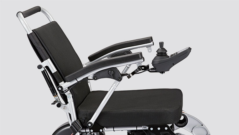 Noggrant arbete har lagts vid ergonomi och brukbarhet. Det smarta joystickfästet går att fälla ner så att du kommer närmare bordskanten och fotstödet viks undan när du ska sätta dig eller resa dig. De stora luftpumpade bakhjulen och den fjädrade dämpningen i framgaffeln ger bra stötdämpning även på ojämna underlag.