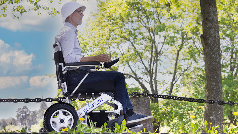 Eloflex F är marknadens mest populära elrullstol. Med unika egenskaper som hopfällbar, kompakt och en aluminiumram med låg vikt har den förändrat hjälpmedelsbranschen.