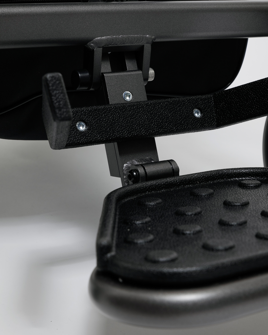 Denna modell har ett smart fotstöd som kan justeras både vertikalt och horisontellt, vilket säkerställer maximal komfort. Designat för bekvämlighet kan fotstödet enkelt fällas undan, vilket möjliggör enkel in- och utstigning ur stolen.