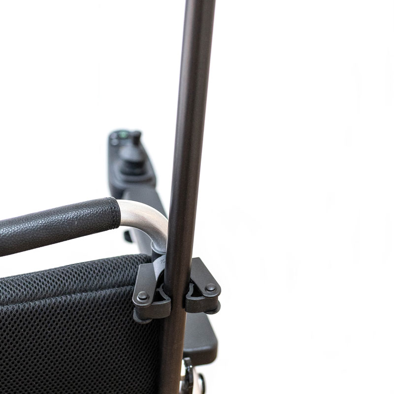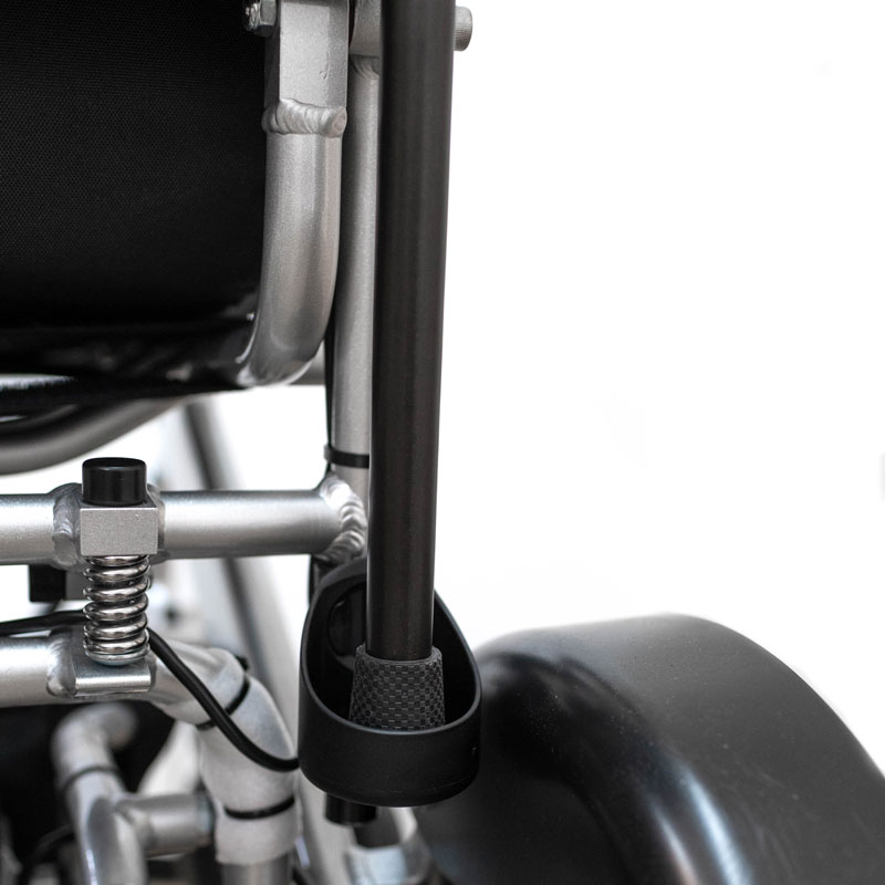 Eloflex kryckhållare är ett utmärkt tillbehör för dig som på ett smidigt sätt vill kunna ta med dig kryckor eller en käpp. Kryckhållaren passar alla kryckor och käppar med standardmått och behöver inte justeras om du byter käpp/krycka. Du fäster kryckhållaren med hjälp av medföljande stjärnskruv runt ramen på din Eloflex som visas på bild 2 och 3.